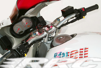 Equipped with double fork clamp bolts, the CNC-machined aluminum triple clamp allows the installation of an 800mm-wide superbike handlebar on all Buell XB 9-R and XB 12-R models.