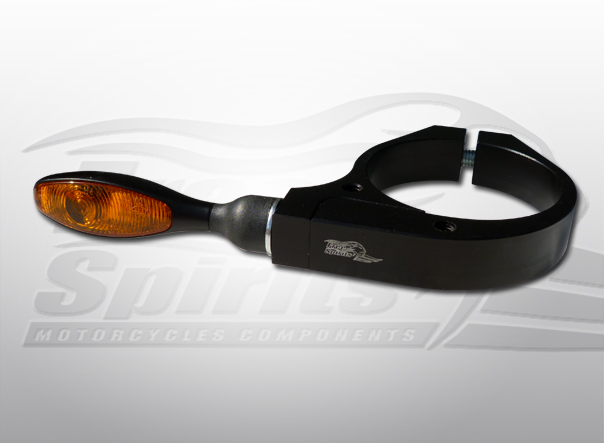 Sportster Lightweight CNC machined billet aluminium designed lowering turn signal clamp to attach to front forks in order to lower the location of the original turn signals, can also be used for aftermarket turn signals with a M8 thread.