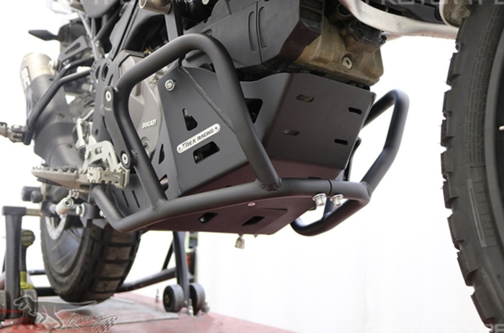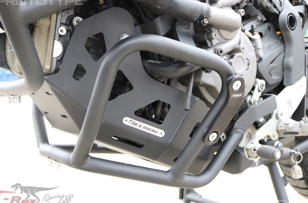 Special Features: Replaceable black engine guard skid plates. Can be used with or without T-Rex top guards, center stand, and skid plate. Compatible with OEM skid plate, engine guards, and center stand.