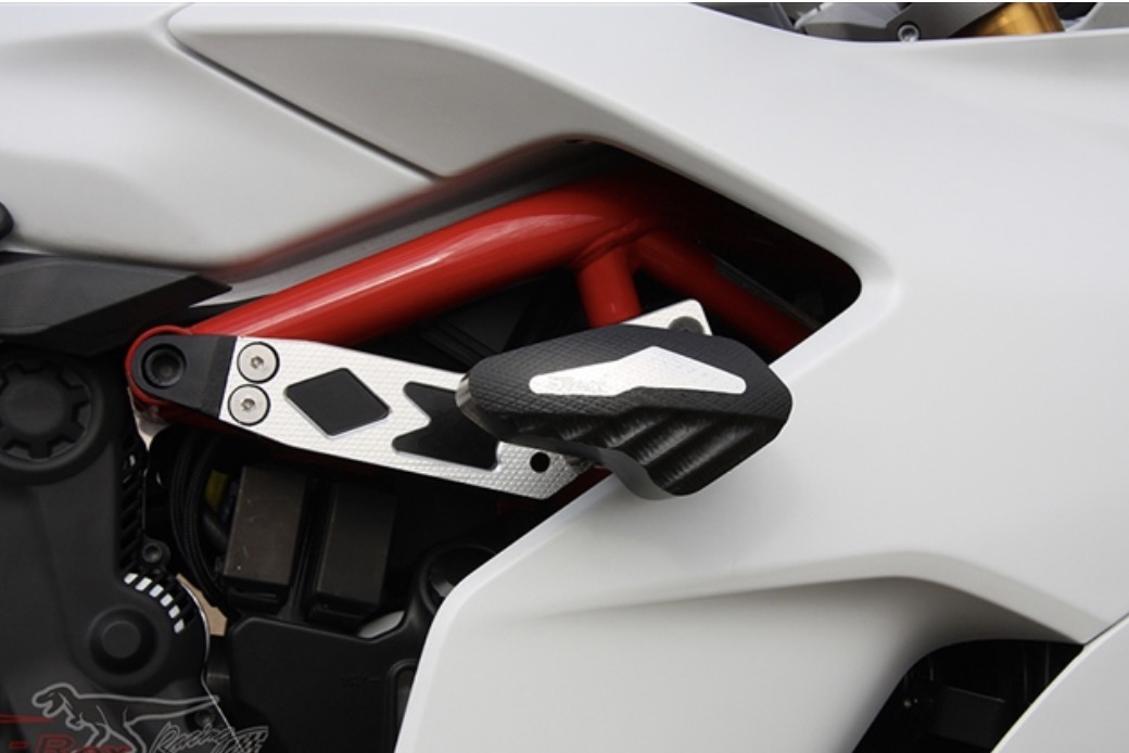 This purchase is for a pair of frame sliders for the above bike model. The sliders feature a new design of a complete solid puck without a hollowed-out center. This increases the strength and contact surface to about 30%. The bracket is bolted to the engine mount and the slider puck is bolted onto it. The brackets have two attachment points preventing them from rotating in the event of a low side. The material of the puck is made of UHMW-PE (ultra high molecular weight polyethylene), a tough plastic with good strength, wear resistance and dimensional stability. It is more dimensionally stable than Nylon and used in many industrial ball bearing and friction reducing applications. Compared to Delrin, it is softer but tougher. Delrin is harder but more brittle. It is an ideal material for frame sliders since it can absorb more impact force onto itself and therefore reduce the impact on the frame and engine. The slider pucks can be inexpensively replaced in case of a low-side. We use highest grade commercially available 12.9(177,000 psi in tensile strength) wherever possible. Rest assured that you are getting the best material commercially available.