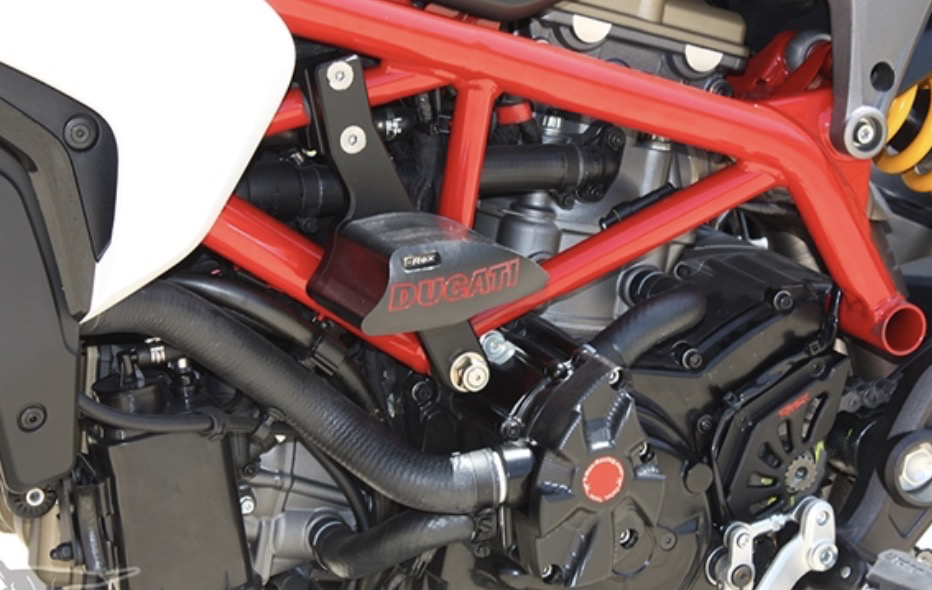 This purchase is for a pair of frame sliders, front axle sliders, and rear axle sliders for the above bike model. The sliders feature a new design of a complete solid puck without a hollowed-out center. This increases the strength and contact surface to about 30%. The bracket is bolted to the engine mount and the slider puck is bolted onto it. The top attachment of both brackets clamp around the tubular frame for maximum strength. The brackets have two attachment points preventing them from rotating in the event of a low side. The material of the puck is made of UHMW-PE (ultra high molecular weight polyethylene), a tough plastic with good strength, wear resistance and dimensional stability. It is more dimensionally stable than Nylon and used in many industrial ball bearing and friction reducing applications. Compared to Delrin, it is softer but tougher. Delrin is harder but more brittle. It is an ideal material for frame sliders since it can absorb more impact force onto itself and therefore reduce the impact on the frame and engine. The slider pucks can be inexpensively replaced in case of a low-side. We use highest grade commercially available 12.9(177,000 psi in tensile strength) wherever possible. Rest assured that you are getting the best material commercially available.