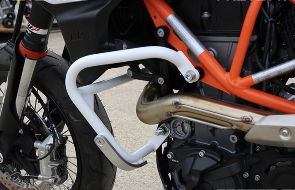 This purchase is for one set of engine guards for the above bike model. The replaceable skid plates can be inexpensively replaced without purchasing a new set of steel guards. The steel tubing is bolted to the engine mount of the bike and the skid plate is bolted onto it. The engine guards has two attachment points on each side and braced together to prevent them from rotating in the event of a low side. Braced together in the middle to its strength and protection. We use highest grade commercially available 12.9(177,000 psi in tensile strength) wherever possible. Rest assured that you are getting the best material commercially available.