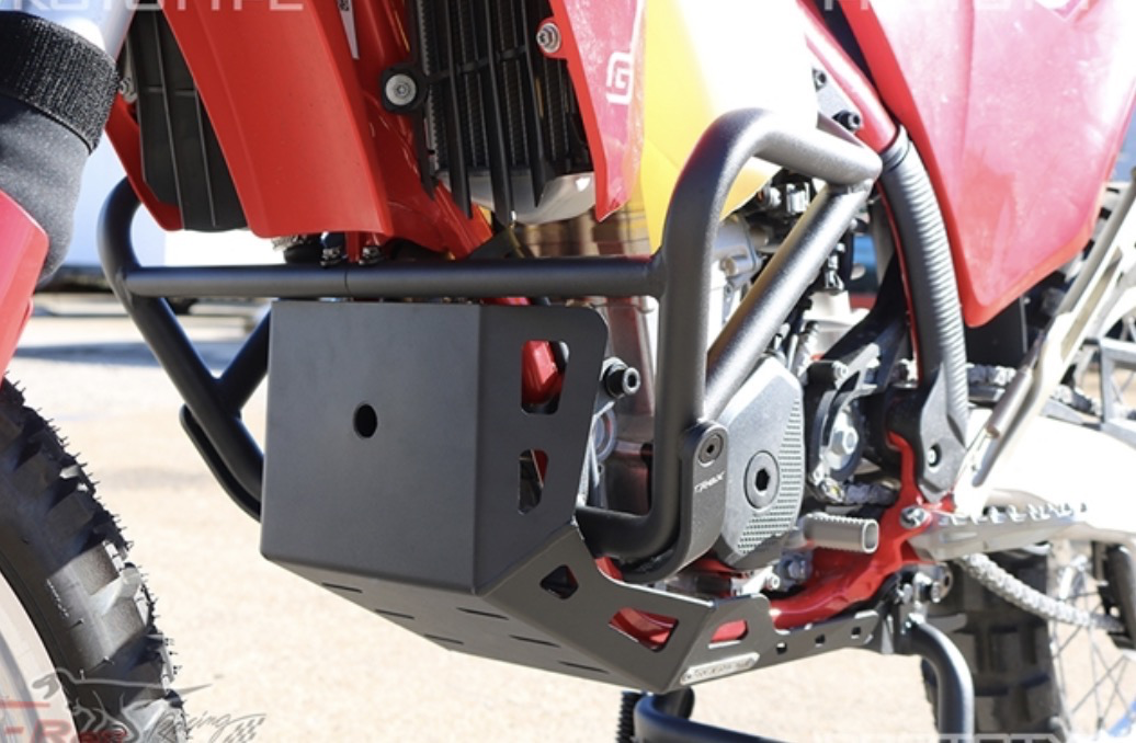 This purchase is for a heavy duty skid plate , designed to minimize damage and protect your bike from dirt, mud, and other debris. The skid plate is CNC cut from a solid 4mm sheet of aircraft grade aluminum. The plate is then tig welded and finished with black powder coating to increase durability. Rest assured that you are getting the best material commercially available.