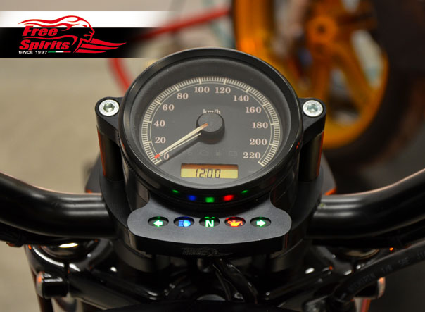 | | | Sportster Dash board Type 2 (Black) | On request | | Sportster Dashboard plate for XL models BLACK. Utilises the original speedo, with new billet aluminium surround/bracket incorporating the original warning lights.