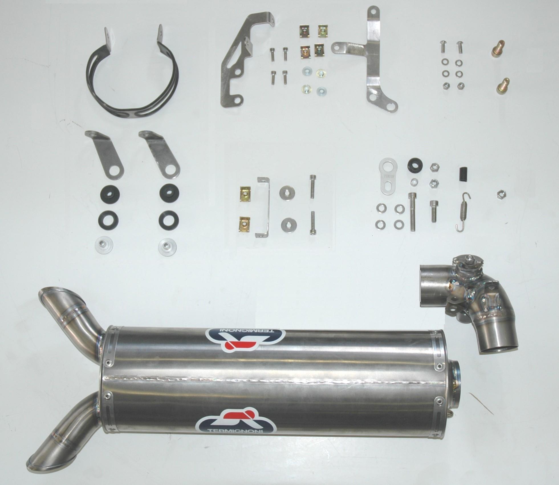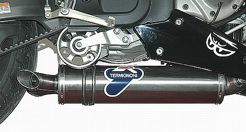 Termignoni, Full Titanium Buell XB12 exhaust. This exhaust is road legal, with a active exhaust valve. The brand new Termignoni is E/TÜV approved ( Homologated 80 db with quiet inserts ) This slip-on setting is a new standard for road legal exhausts. The XB 12 Termignoni keeps the Buell active exhaust system for maximum midrange torque. The quiet inserts are removable. This version has Titanium inner works and end cap with pipe and Titanium damper shell. Fits Buell XB 12 R-S-X '04-'07 models