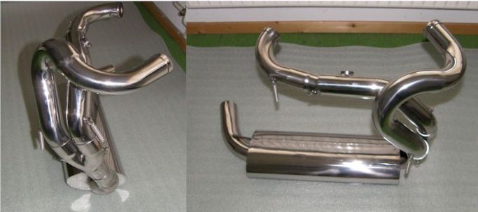 The exclusive, Blaster-T complete titanium exhaust system. A High end product of polished titanium with 28 months warranty. Here the facts: * 50 mm titanium elbow union with 1.0 mm of walls * Perfect welding, * high polished elbow, calculated elbow lengths and resonance connection * Very Nice oval exhaust from titanium with accurately measured resonance volume. * raised exiting on the left side with putting in db-killer * feather-pulled with V2A feathers/springs * doubled suspension of the plant * TüV * Up to 11 KW performance increase, depending upon equipment to your Buell. * Theft senselessly, which are serial numbers on the buyer registered. The original engine spoiler must be fitted again because of the larger diameter of the pipes. When you order you can tell us whether you like too mount the engine spoiler or not. There are 2 versions for sale Who wants to hide this nice complete exhaust system.?