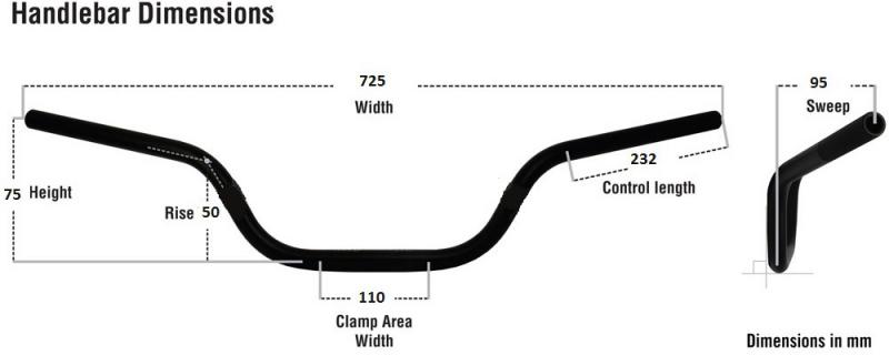 Renthal Road bike ultra low handle Bar Black The following features are integral to the Renthal 7/8' handlebars. 7/8' (22mm) external diameter to fit most standard sized clamps and controls 7010 T6 Aluminium, which Renthal has exclusive rights to this specially developed alloy, for the manufacture of handlebars. High impact strength, lightweight and excellent vibration dampening Shot peened surface finish to help prevent fatigue failure Knurling Grip end only increases bonding between bar and grip No knurling in clamp area, this could cause a stress riser and lead to fatigue failure Anodising a 15 step anodising process forms an integral coating giving protection against corrosion Renthal copyrighted, bonded lightweight single bolt clamping system for the cross-brace* , greatly increases strength whilst still allowing flex Laser etched positioning grid The highest quality individual steps/processes required in the production of each bar and 58 separate quality checks made