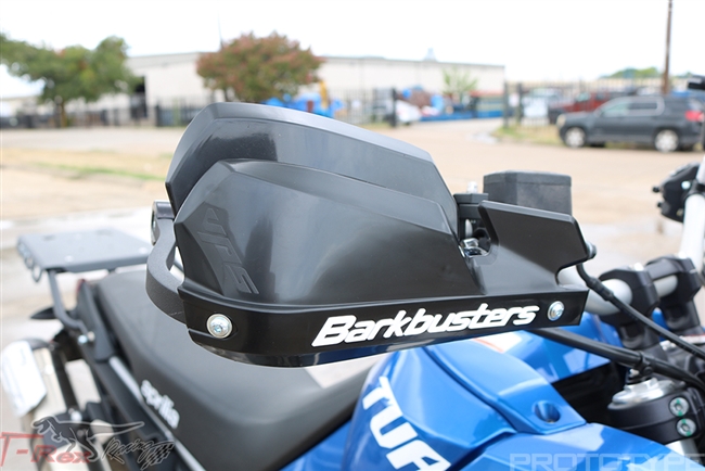 The purchase is for a set of T-Rex Racing hand guard brackets with mounting kit and Barkbusters wind deflectors. Unlike other hand guards, our is made of aircraft grade aluminum brackets which were designed to minimize damage in case of a lowside or tip over.