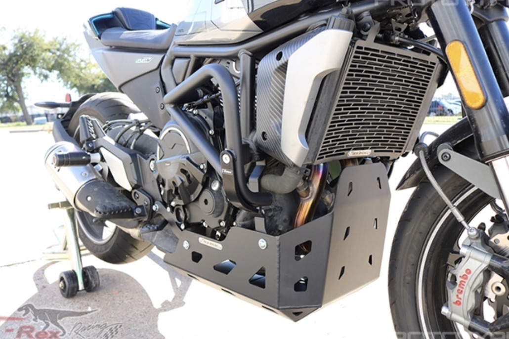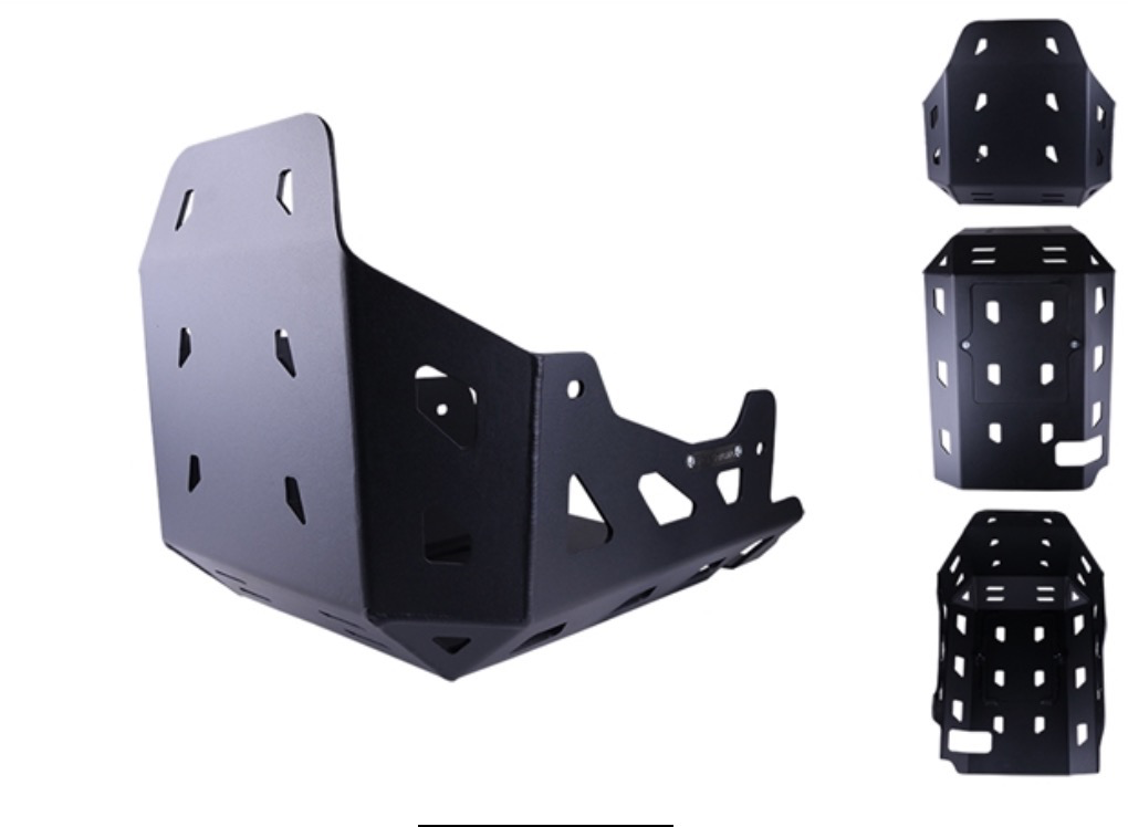 We understand that riders want protection for both on/off the road. Our skid plates were designed to take the beatings of your everyday riding. Our skid plates are mounted at two locations (front, back). The mounting locations of a skid plate play a critical role in how much it can minimize damage and protect. We did not want to mount anything on the engine cover or stator as that would more likely cause more problems than prevent. Other skid plates that mount on the covers is trusting the integrity of the plate on 6mm bolts that are connected directly to the engine covers. Major impacts or accident will rip and crack that cover or bolt.