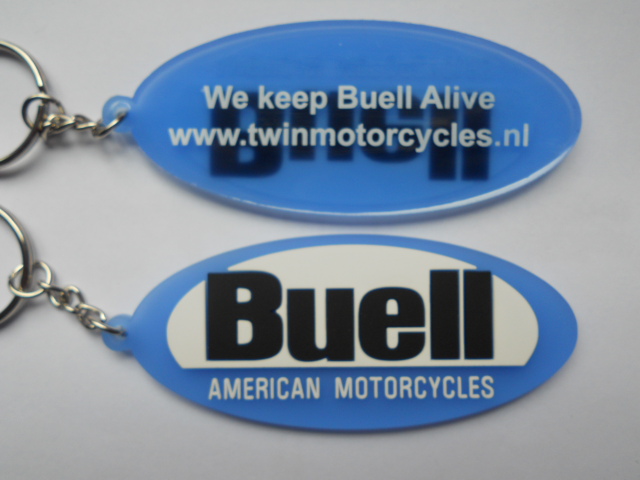 Twin Motorcycles made this key chain from soft blue plastic with a 3D design Buell logo and test on top of it. When you order parts from us, it comes in every parts order as a gift.