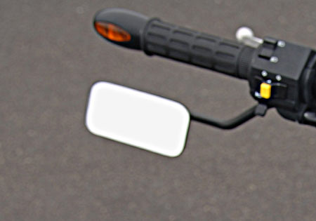 Buell X1 en M2 spiegel in zwart uitgevoerd. Bedoelt om onder je elleboog door te kijken. Met deze spiegel zitten je ellebogen dus ook niet in de weg.