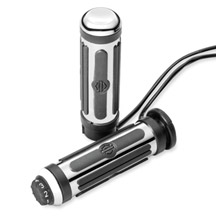 Fits 1996 and later Sportster XL and XR1200 models. Not compatible with internally wired handlebars. Chrome and Rubber both have their distinct places in the world of motorcycle styling. It seemed natural to bring the two together to create this unique collection. Keep comfortable on those cool morning or frigid night rides. Warm hands have a major impact on overall body comfort, and sometimes gloves just aren't enough. These thermostatically controlled grips have variable heat settings and automatic temperature monitoring to adjust to changing ambient temperature. The grips remain at a constant temperature regardless of changes in outside temperature. The self-contained control circuit and control knob means you have no additional switches or controller boxes to mount, and the grips are switched on/off with the ignition to avoid draining your battery. The "glueless" grip design allows grip removal if you change handlebars or motorcycles.