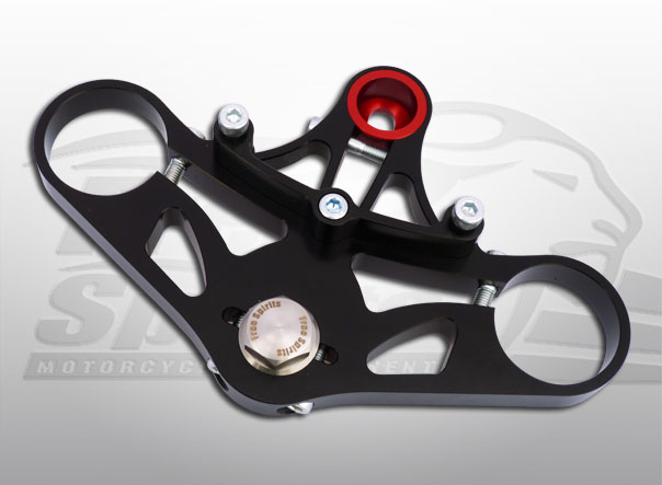 Triple tree kits for XR1200. CNC machined from top quality billet aluminium and finished in silver or black anodised finish, this top yoke (triple tree) kit includes new headlight bracket. The whole setup weighs just 1.2kg (compared to the stock 2.5kg). Supplied with all necessary parts and instructions.