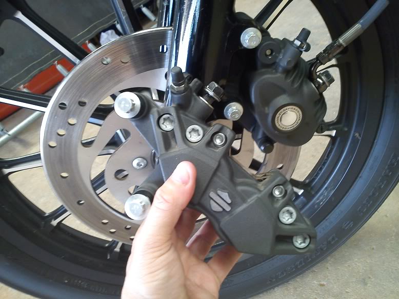 This caliper is also used for upgrading on the Sportsters. It is a bolt on solution, straight away. Iron 883 or Sportster 48, or other Sportster models.