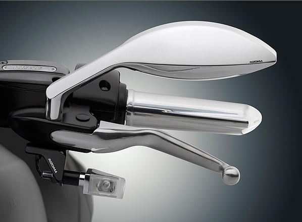 Rizoma Mirror Edge polished, Right A thin line of aluminium that bends to extend and spill into a pool of light: simple form, maximum visibility. All in one single piece. These mirrors are sold individually and come with mounting adapters for bikes that have threaded holes for their stock mirrors all HD models
