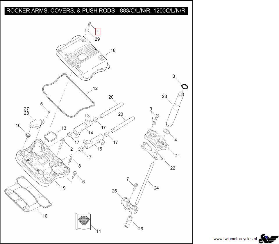 Rocker arms, Covers & push rods Screw, 1/4-20 X 1 hex socket, SEMS/Lock.