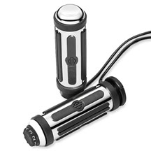 Chrome and Rubber both have their distinct places in the world of motorcycle styling. It seemed natural to bring the two together to create this unique collection. Keep comfortable on those cool morning or frigid night rides. Warm hands have a major impact on overall body comfort, and sometimes gloves just aren't enough. These thermostatically controlled grips have variable heat settings and automatic temperature monitoring to adjust to changing ambient temperature. The grips remain at a constant temperature regardless of changes in outside temperature. The self-contained control circuit and control knob means you have no additional switches or controller boxes to mount, and the grips are switched on/off with the ignition to avoid draining your battery. The "glueless" grip design allows grip removal if you change handlebars or motorcycles.