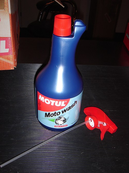 RECOMMENDATIONS Spray generously all over the whole motorcycle, using the 'wide jet' position on the gun. Allow to work for a few minutes. Rinse with water, jet, or steam pressure. For very dirty parts, repeat the operation using the position 'directed jet' on the gun and rub with a sponge or a rag. Use a soft cloth to obtain a perfect finish.