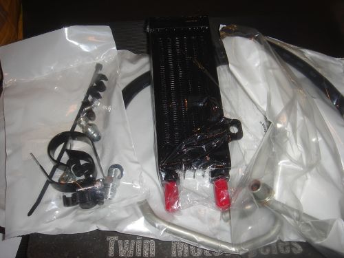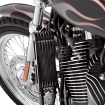 Big Twin oil cooler technology for the Sportster® model. This vertical-mount cooler features a unique "Turbulator" system that efficiently distributes oil across the cooling chambers. The air fins feature several louvers to efficiently dissipate heat. The Premium Oil Cooler has been designed for ease of installation, and features oil lines that connect directly to the oil pump and engine. Kit includes oil cooler, oil lines and mounting hardware.
