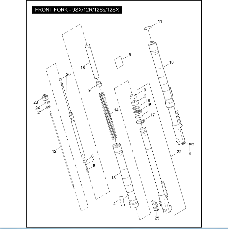 Buell XB12 SS Black Left fork slider Left SLIDER COMPONENT left fork w/ 1, 2, 13, 14, 15, & 17 JX SLIDER COMPONENT left fork w/ 1, 2, 15, 16, 17, & 19 JX